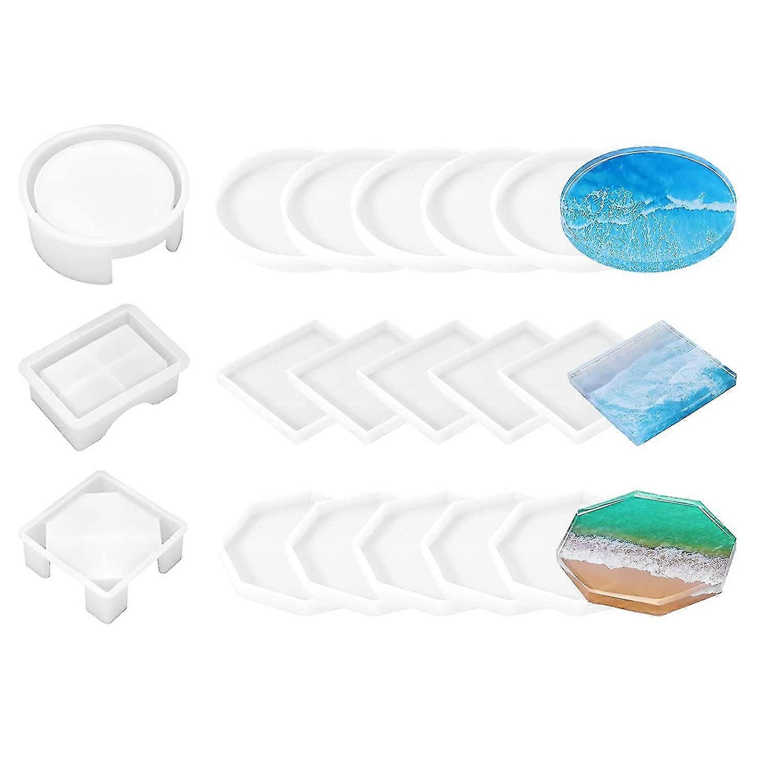 18 Pcs Resin Coaster Moulds, Epoxy Coaster Moulds With Storage Box Moulds For Diy Art Craft Coaster