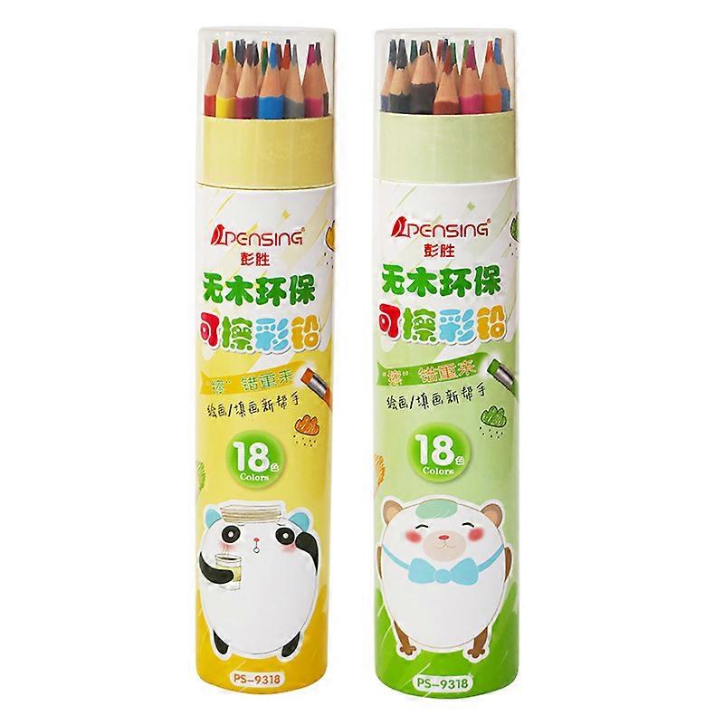 18 colorsCartoon bear barrel with eraser drawing graffiti erasable colored pencils colored lead environmentally friendly pen