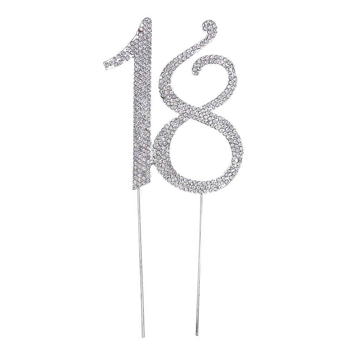 18 Cake Topper for 18th Birthday Party or Anniversary Crystal Rhinestones Decorative Cake Topper for Party Supplies (Silver)
