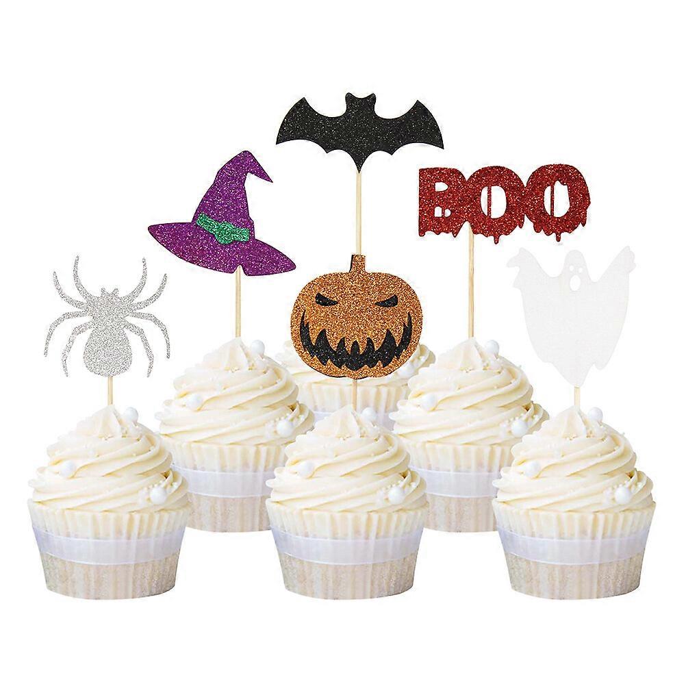 18pcs Halloween Cake Toppers Spider Witch Pumpkin Shape Theme Decorative Cupcake Muffin Food Fruit Picks Festival Party Favors Supplies
