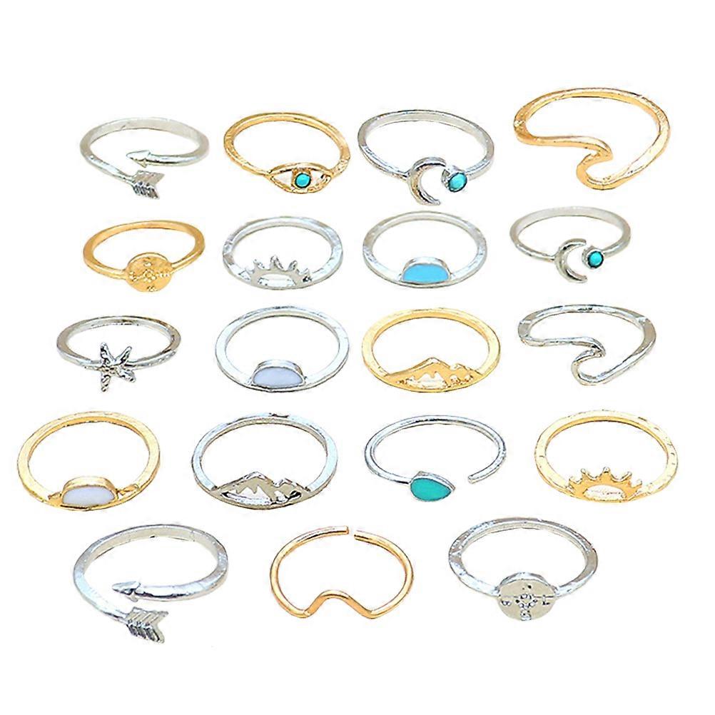 19pcs Turquoise Alloy Vintage Open Finger Rings Stylish Stackable Jewelry for Teen Women Fashion Accessories