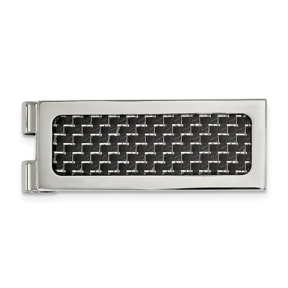19.93mm Stainless Steel Polished With Black Carbon Fiber Inlay Money Clip-Money-Clip for Men