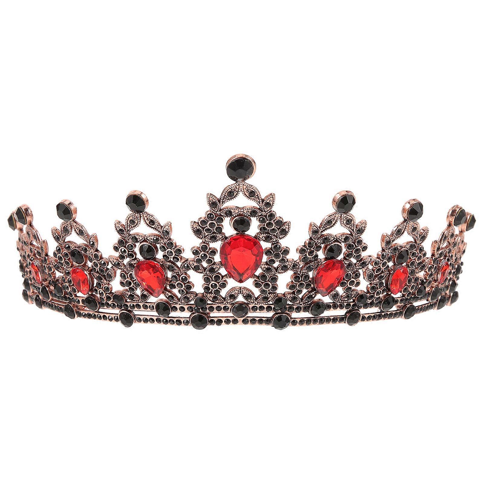 1PC Vintage Large Crown Luxury Classical Crown Tiara Hair Headwear for Lady (Red)