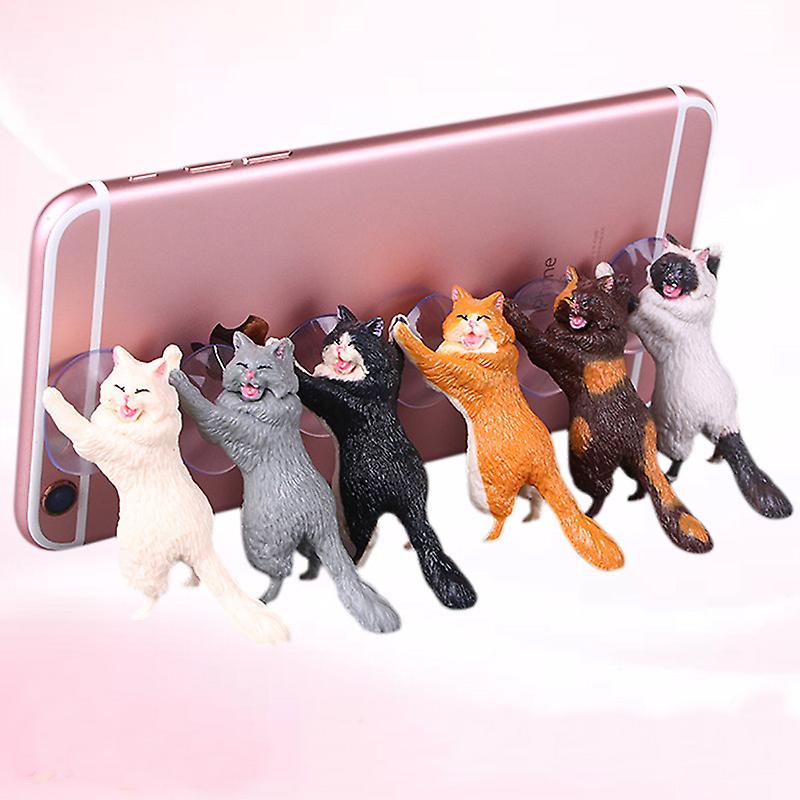 1pc Cat Figurine Miniature Cat Sucker Design Phone Holder Decorative Gift