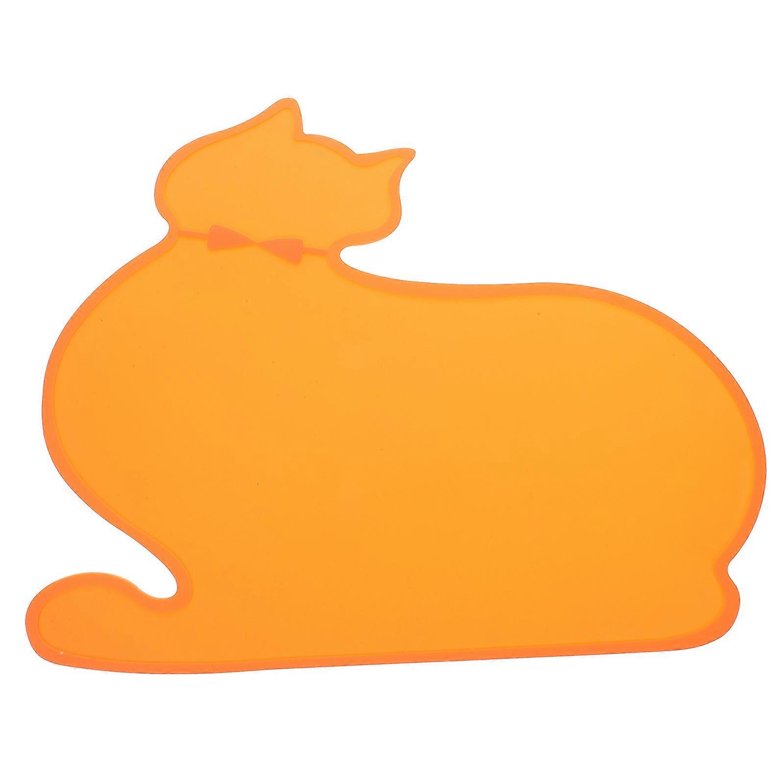 1PC Creative Cat Shape Silicone Pet Placemat Waterproof Food Pad Anti-Slip Pet Feeding Placemat Heat Insulated Mat (Orange, 47x36.5cm)