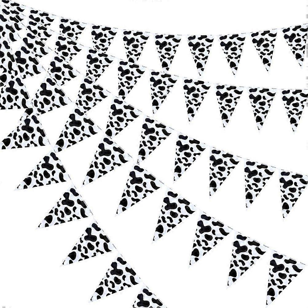 1pc Cow Pennant Banners 8m Cow Bunting Banner Birthday Party Supplies for Farm Animal Theme Party (White+Black)