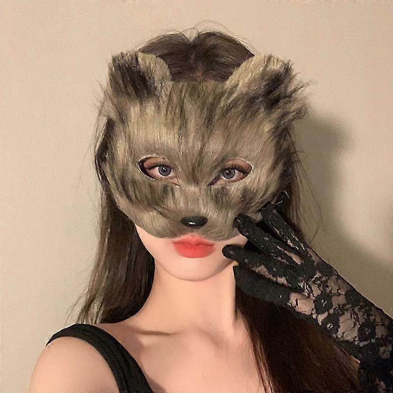 1Pc Halloween Cosplay Party Costume Diy Accessories Faux Fur Fox Mask Furry Half Face Animal Cat Mask