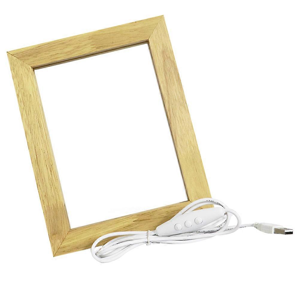 1pc Lighting Photo Holder Wooden Picture Frame Picture Display Decor(Wood Color)