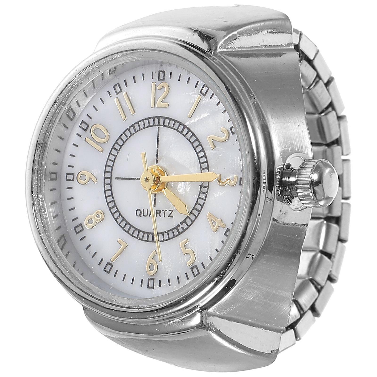 1pc Stylish Finger Watch Fashionable Mini Ring Quartz Watch Jewelry for Women Men (Silver)