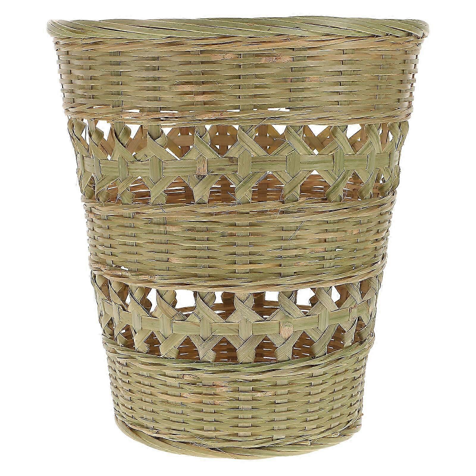 1PC Bamboo Woven Trash Can Manual Woven Wastepaper Basket Retro Storage Basket