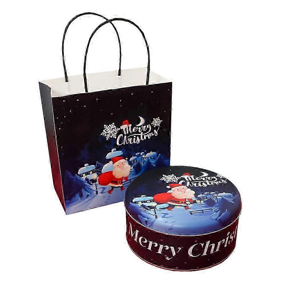 1pc Christmas Tinplate Candy Jar Creative Gift Storage Box Decorative Box with Tote Bag (Random Style and Color)