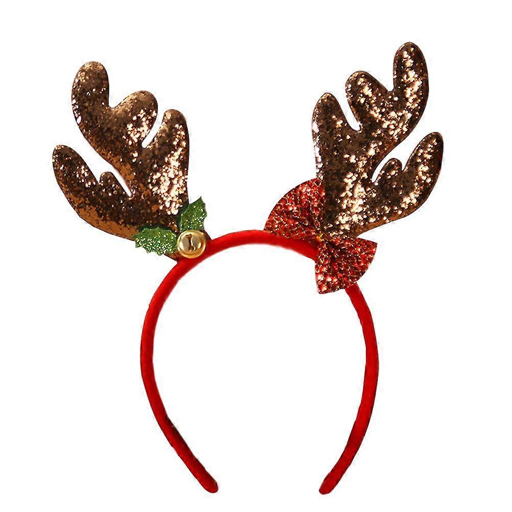 1PC Christmas Decorations Glitter Antlers Head Buckle with Bells Headband Hair Bands (Coffee)