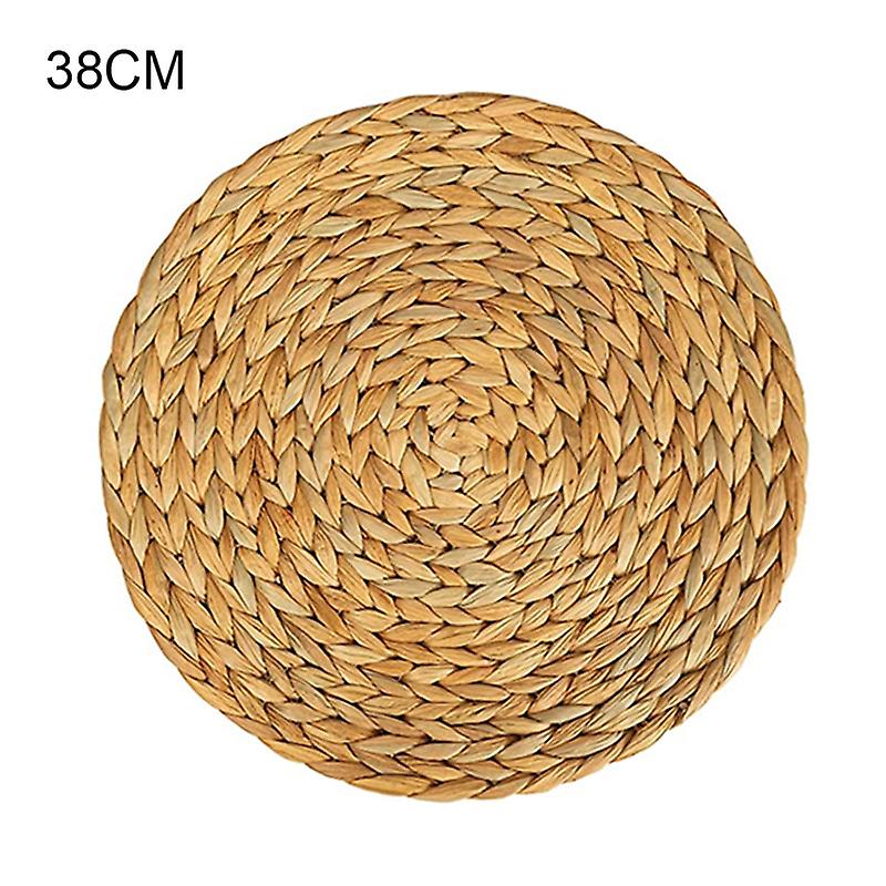 1pc Table Mat Handmade Water Hyacinth Woven Placemat Round Braided Mat Heat Resistant Hot Insulation Anti-skidding Pad