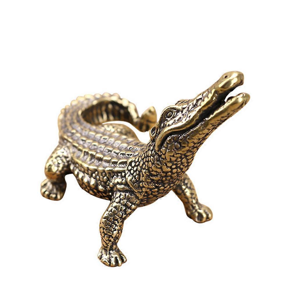 1Pc Antique Adornment Simulation Crocodile Model Toy Animal Decoration (Golden)