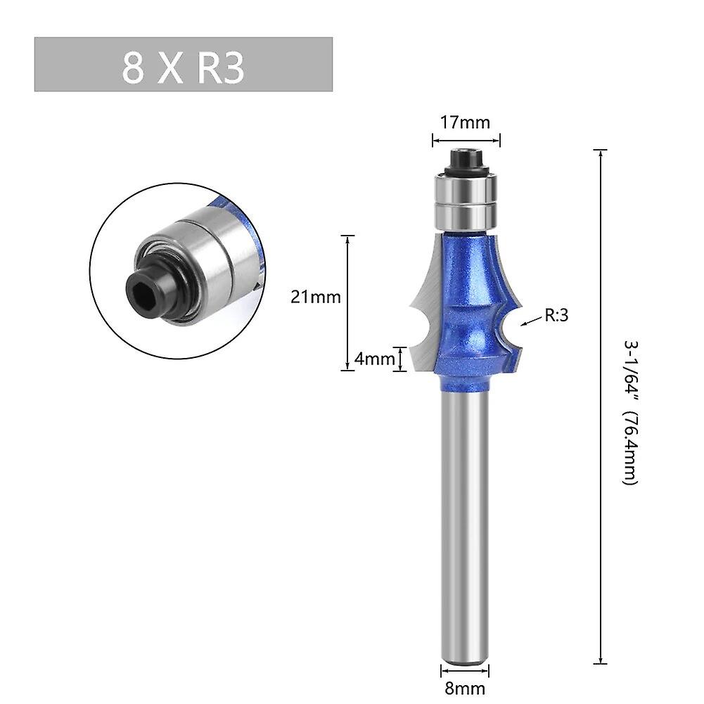 1PC 8mm Shank Steel Wood Router Bit YG6X Carbide Tip End Mill Wood Milling Cutter with Bearing Woodworking Tools R1.5-R4~13711