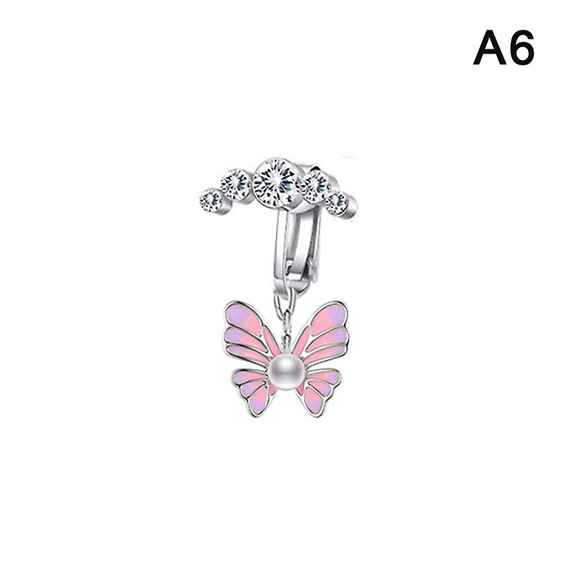 1pcs Fake Belly Button Ring Love Wings Butterfly Fake Pendant Belly Piercing Clip On Umbilical Non Navel Fake Pircing Earring Clip