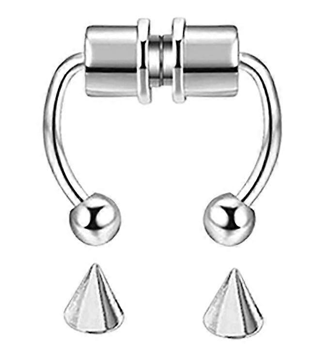 1set Punk Fake Nose Ring Stainless Steel Fake Nose Ring Clip Fake Septum Piercing Magnet Non Piercing Nose Ring Fashion Jewelry