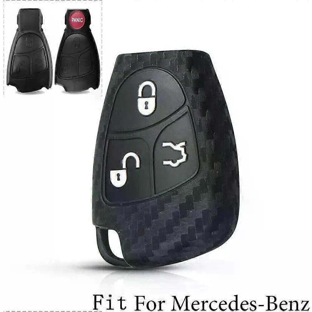 1x Carbon Fiber Pattern Soft Silicone Car Key Fob Cover For Mercedes Benz W203 W204 W211 B C E ML S CLK CL Remote Case 3 Button