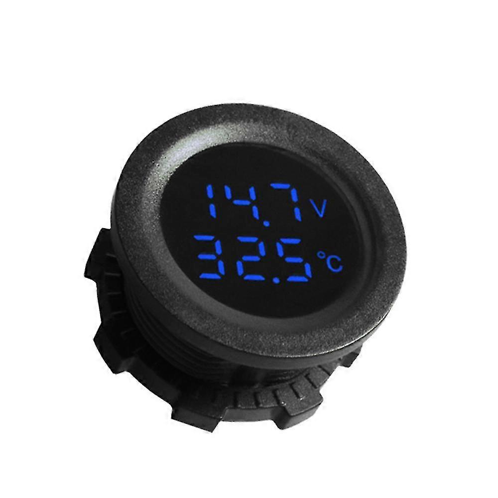 2 In 1 Car Voltmeter Thermometer DC 12-24V Digital LED Round Auto Voltage Test Display Measurement for Car Motorcycle Boat Yacht Voltmeter 2025