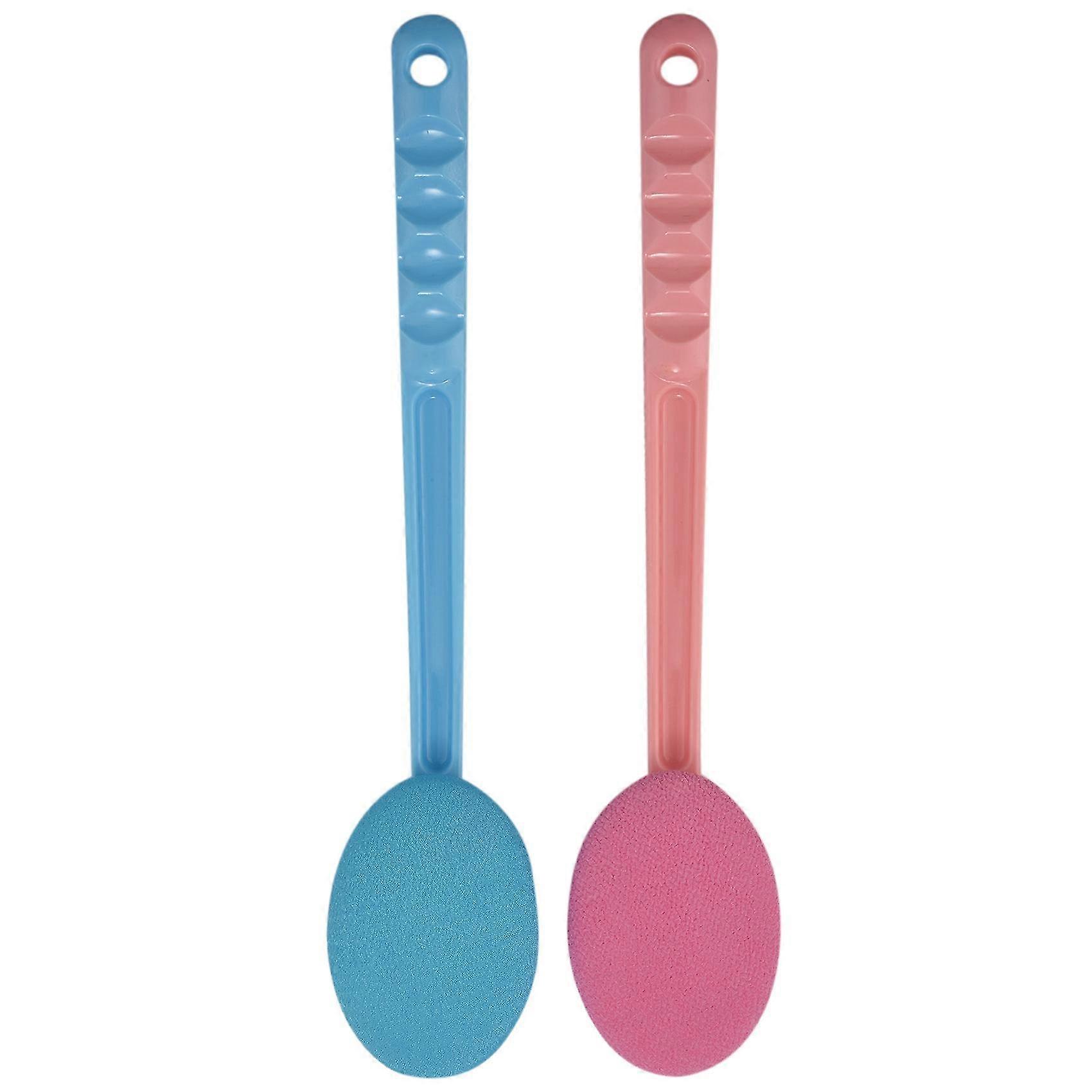 2 Pink & Blue Back Rubs & Massager Bath Brush Easy Lotion Applicator,extra Long Handle,great For Bo