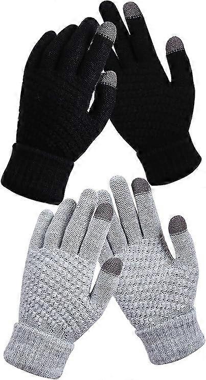 2 Pairs Women's Winter Touch Screen Gloves Warm Fleece Lined Knit Gloves Elastic Cuff Winter Texting GlovesBlack + Grey,2024 Ping