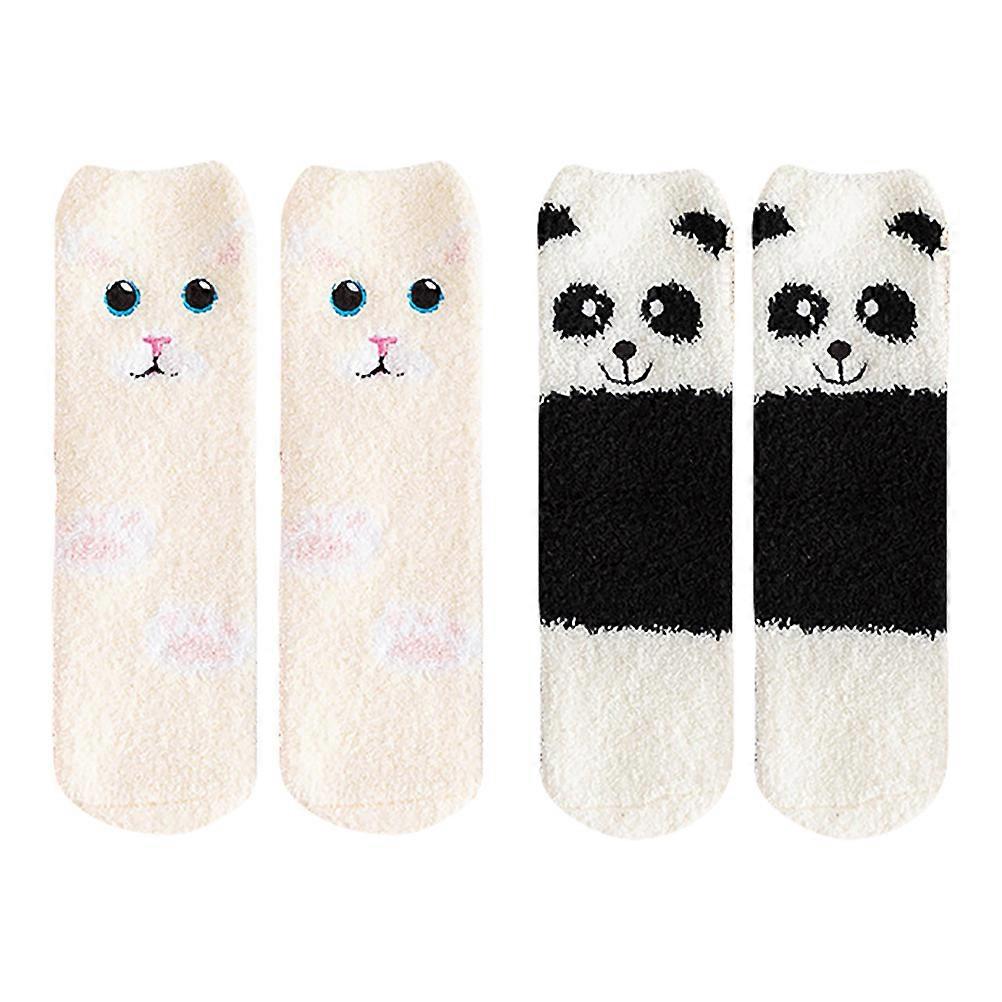 2 Pairs Fluffy Socks Comfortable Stockings Warm Coral Fleece Floor Socks