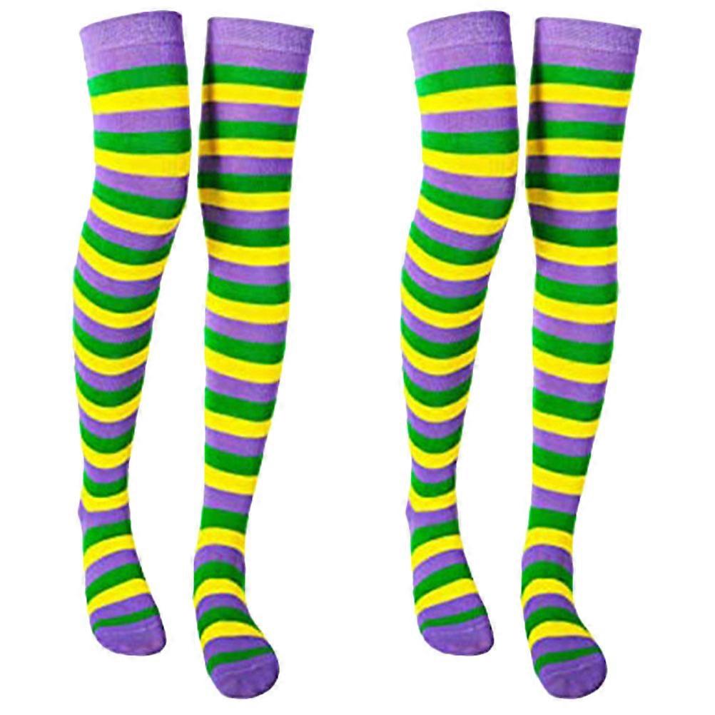 2 Pairs of Over the Knee Carnival Stockings with Creative Striped Socks for Party Costume Supplies