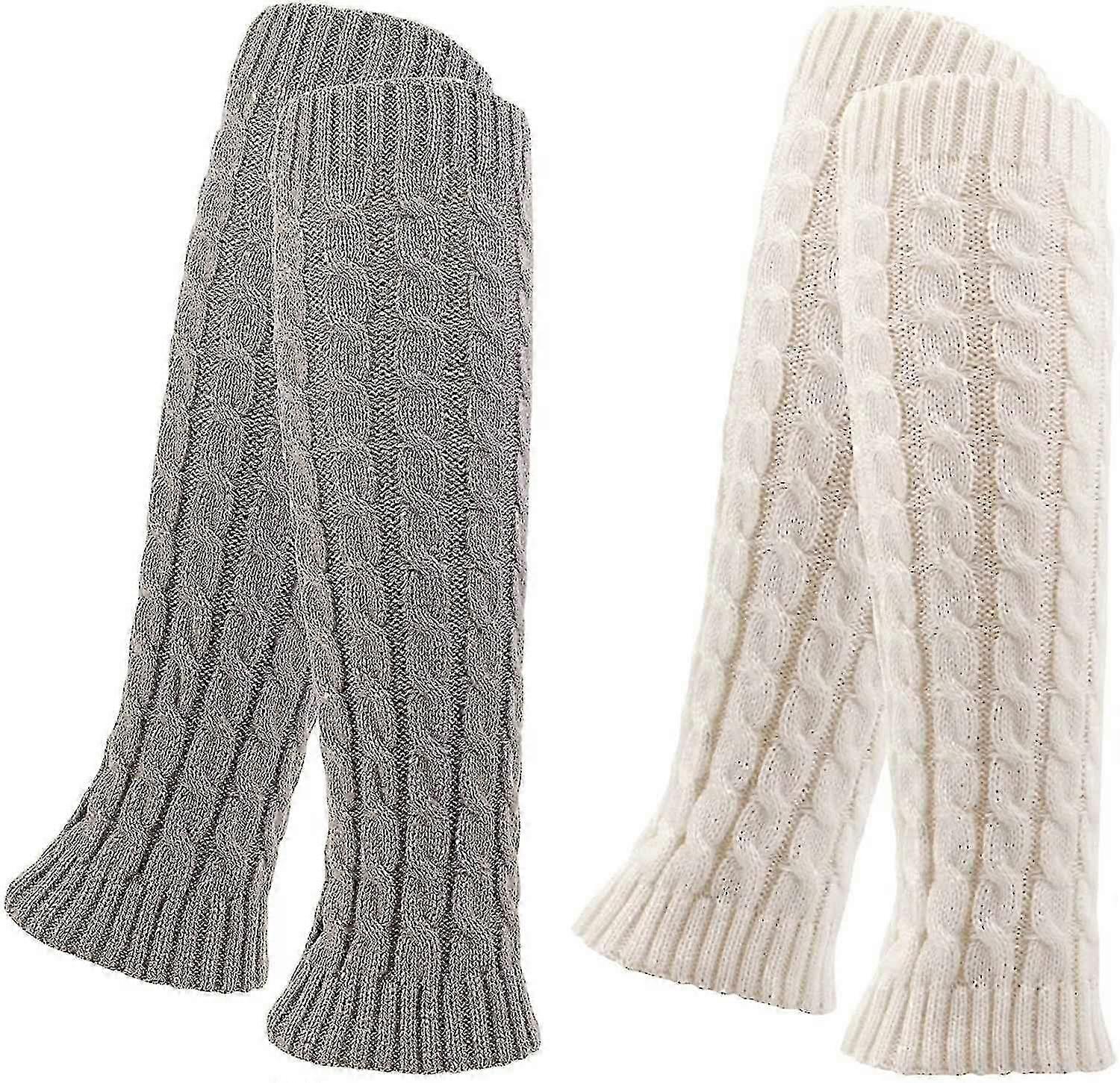 2 Pairs Of Women's Leggings, Leg Warmers(2 pcs, white, grey)-2025-ss