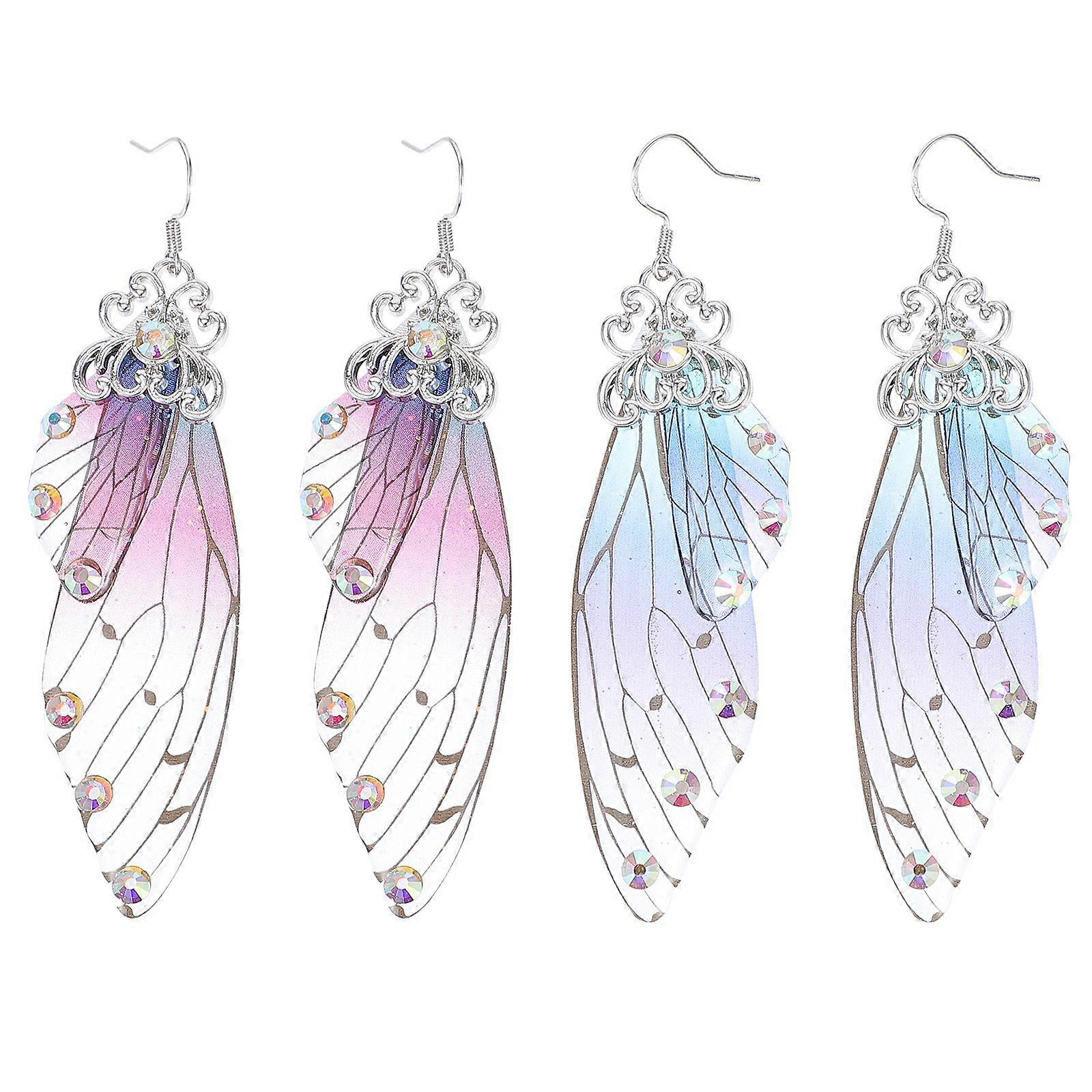 2 Pairs Butterflies Wings Themed Earrings Chic Earrings (Assorted Color)