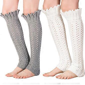 2 Pairs 46CM Winter Knitted Leg Warmers, Long Crochet Legwarmers Warm Knitted Boot Cuffs Socks Thermal Thigh High Socks Crochet Knee High Socks