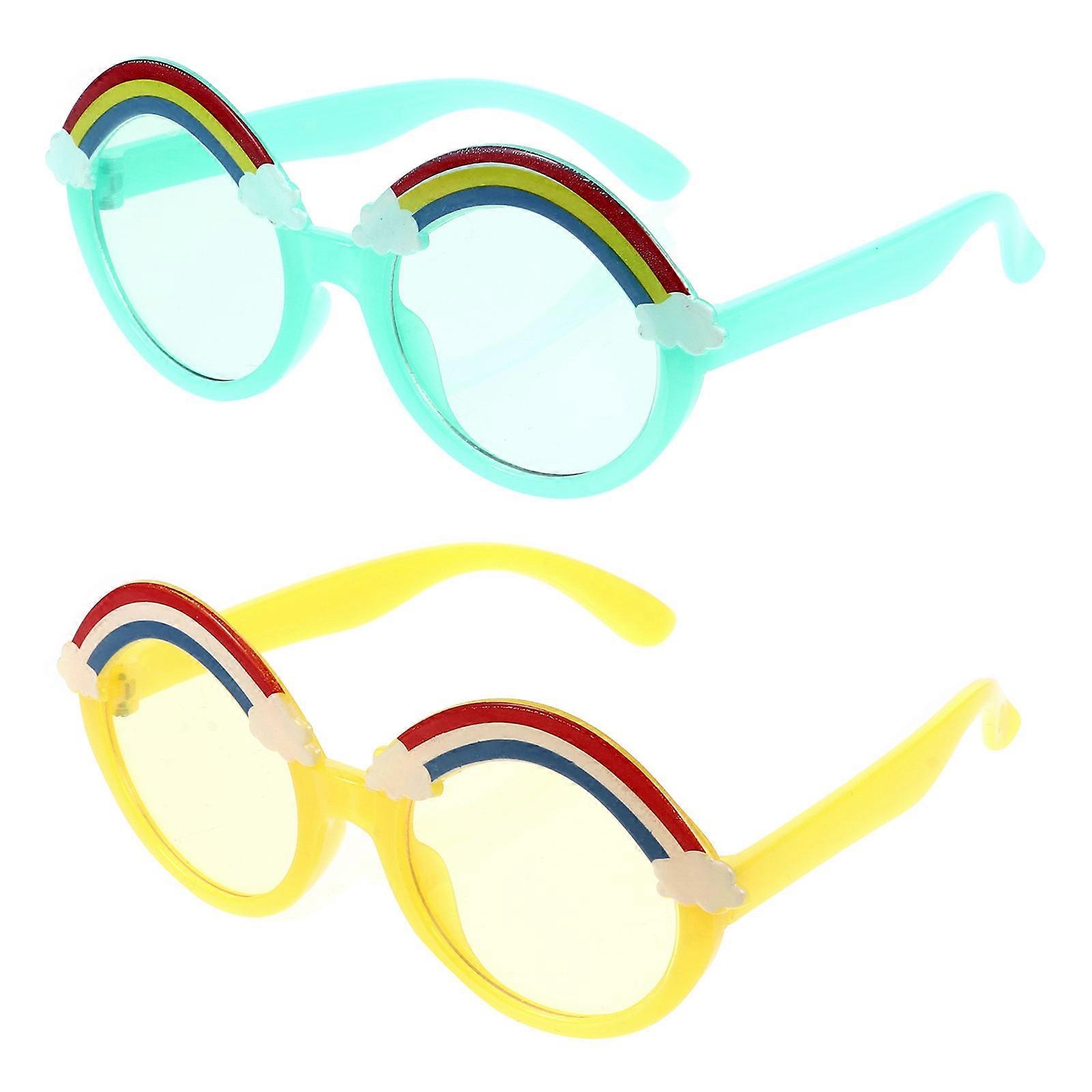 2 Pairs Cute Decorative Sunglasses with Rainbow Cartoon Round Frames, Lightweight UV Protection Eyewear for Summer Fun