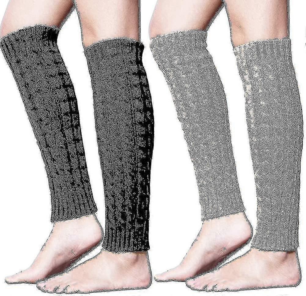 2 Pairs Women Knit Leg Warmers Winter Warm Long Boot Socks