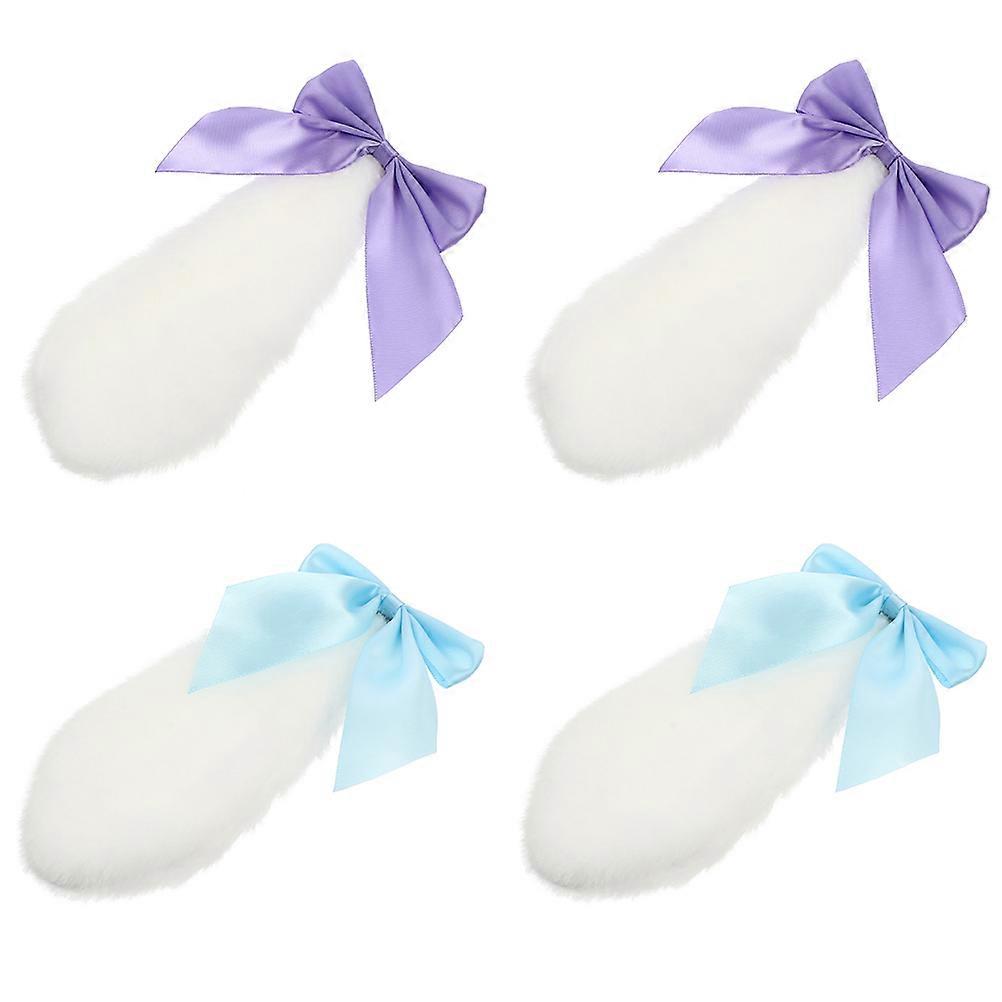 2 Pairs Rabbit Ears Hairpins with Bow for Women Soft Barrettes for Lolita and Cosplay Events