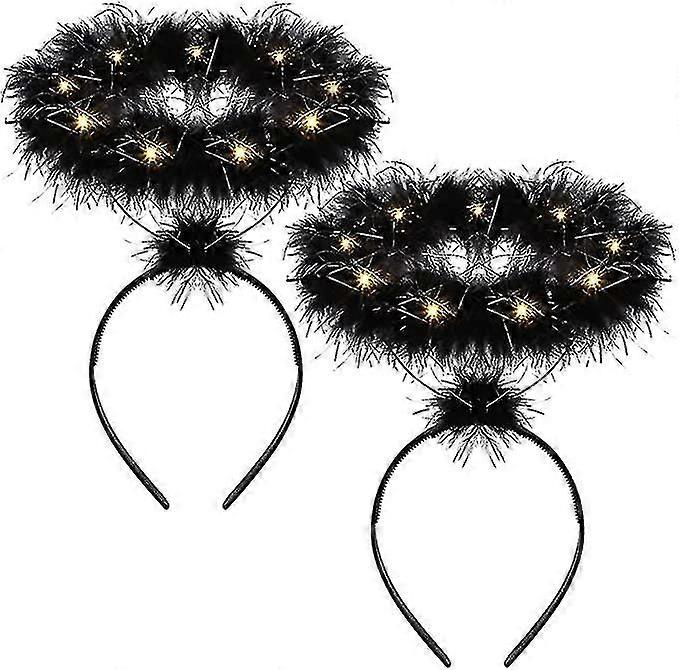2 Pack Light Up Angel Halo Headband Led Feather Headband Angel Halo Headband For Christmas, Angel Costumes Led, Black