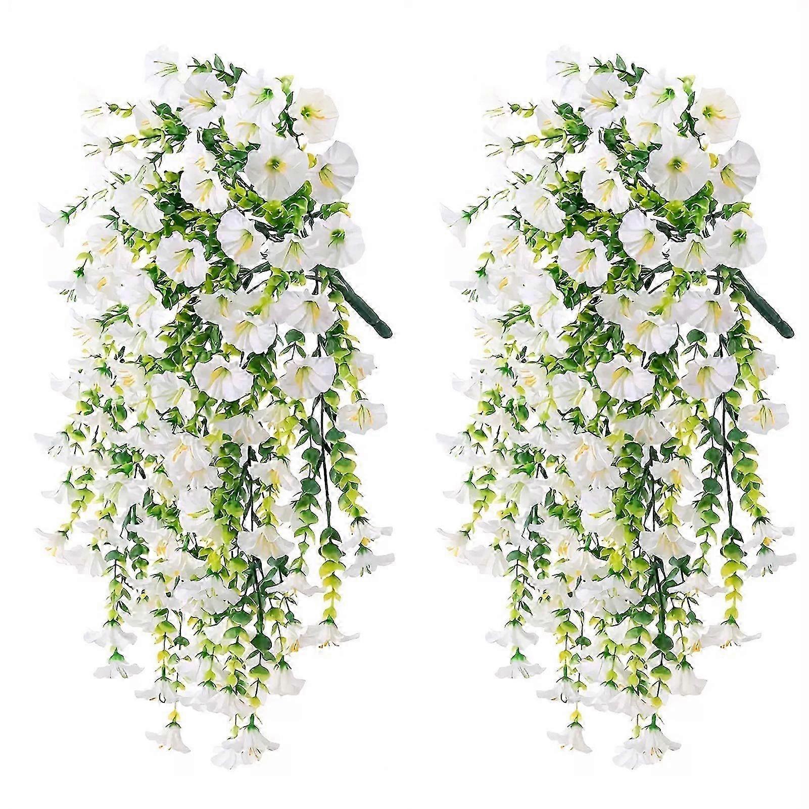 2-Pack Artificial Morning Glory Flowers for Spring Outdoor Wall Hanging Decoration, Wall Wisteria Hanging Basket Plants 2025