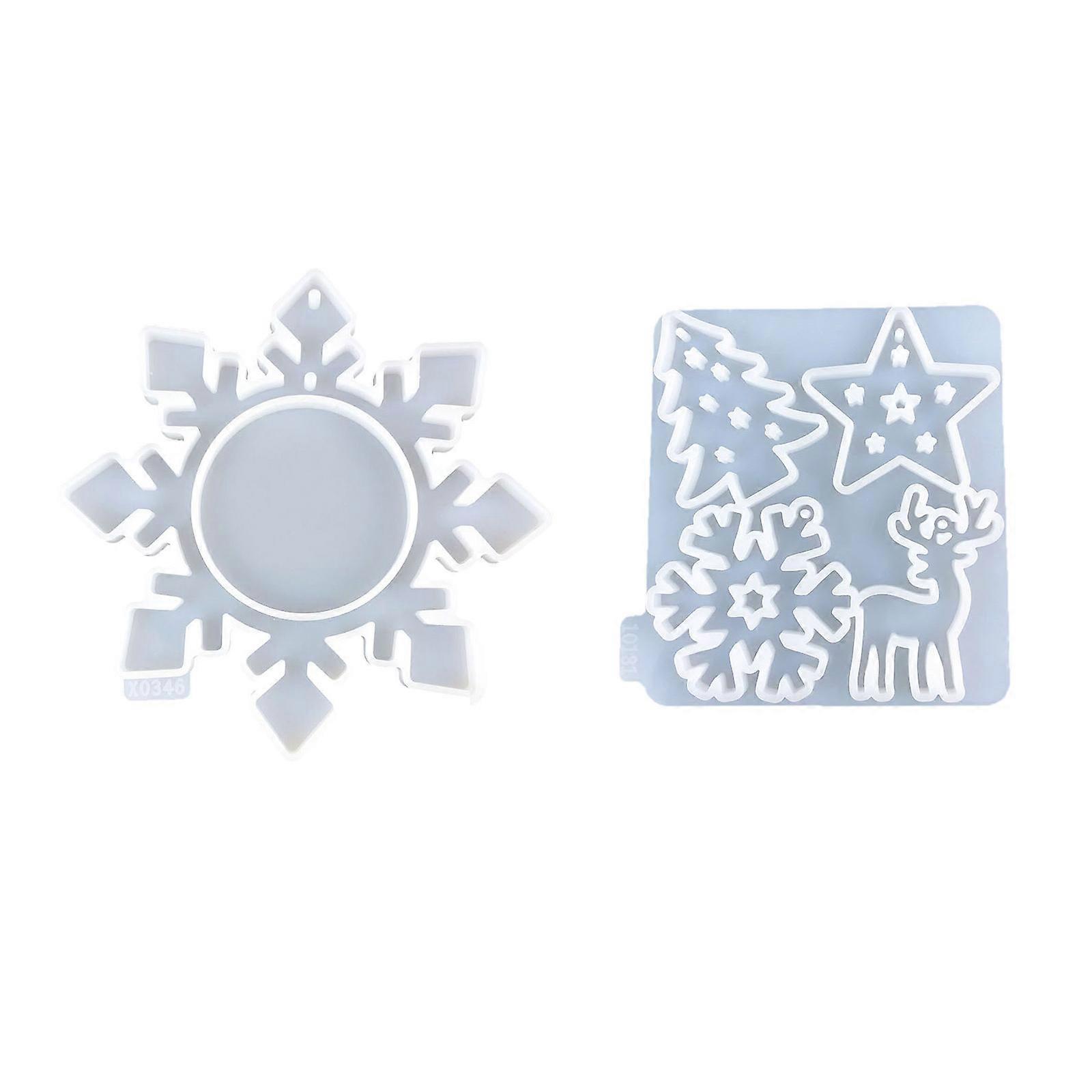 2 Pack Creative Snowflake Silicone Moulds Christmas Theme Flexible Pendant Molds Suitable for Wall Embellishments