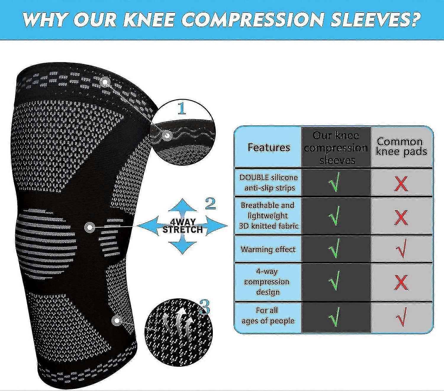 2 Pack Knee Compression Sleeve - Knee Brace For Men & Women, Knee Support For Working Out, Running, Basketball, Gym, Weightlifting, Workout, For Arthr