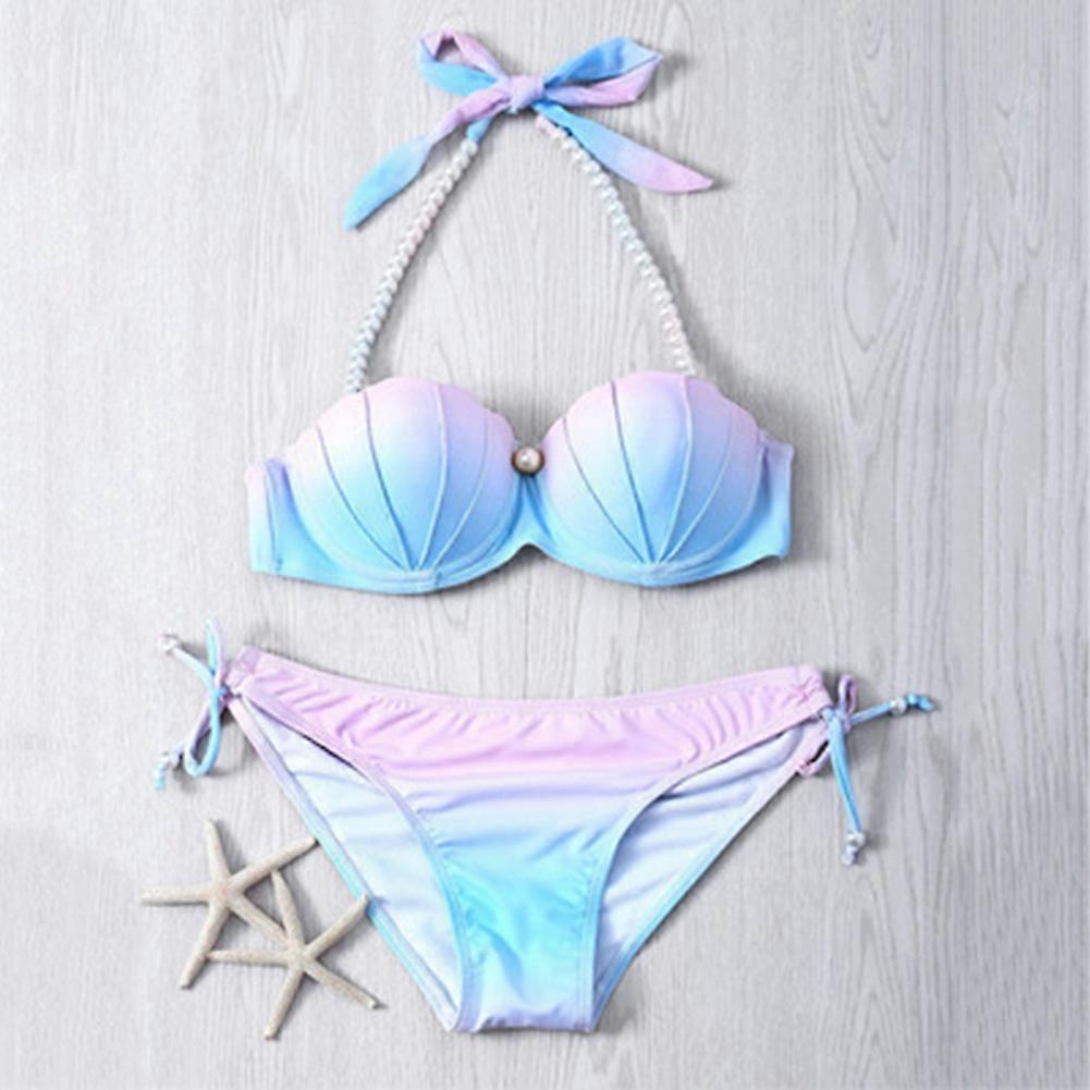 2-Piece Women's Mermaid Bikini Colorful Breathable Summer Halterneck Swimsuit