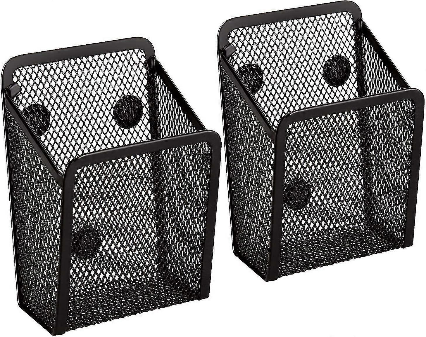 2 Piece Magnetic Pen Holder - Mesh Storage Baskets With Strong Magnets For Fridge Storage Kitchen Organizer Desk Organizer Locker Accessories - Black