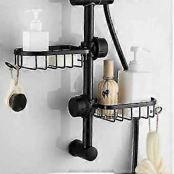 2-Piece Black Stainless Steel Adjustable Shower Shelf No-Drill Bathroom Organizer