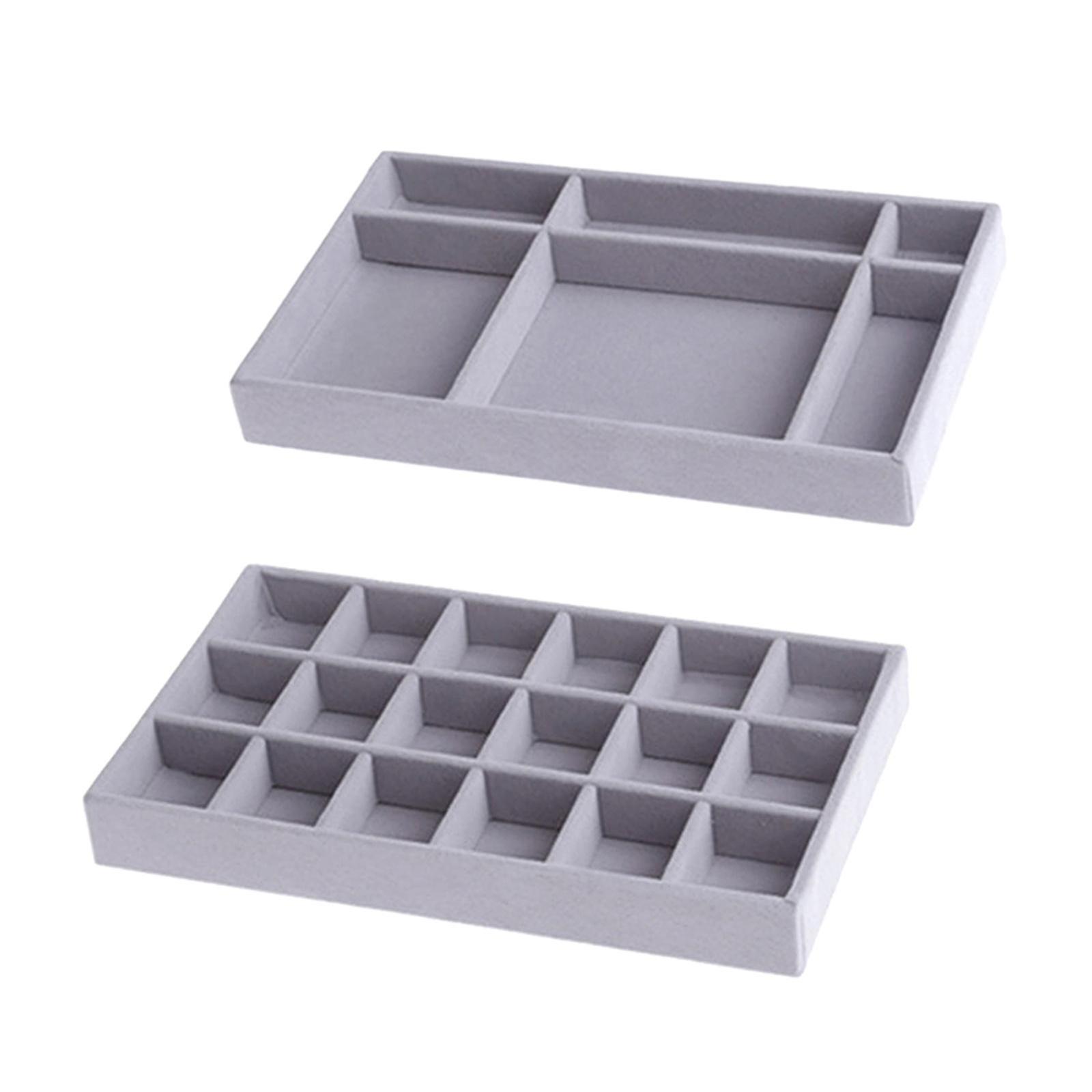2 Pieces Velvet Jewelry Display Tray Earrings Bracelets Storage Organizer