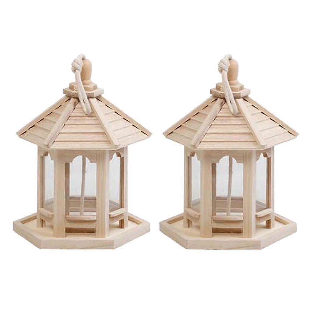 2 Pieces Garden Hanging Wood Bird Feeder Gazebo Lantern for Yard Patio Homes