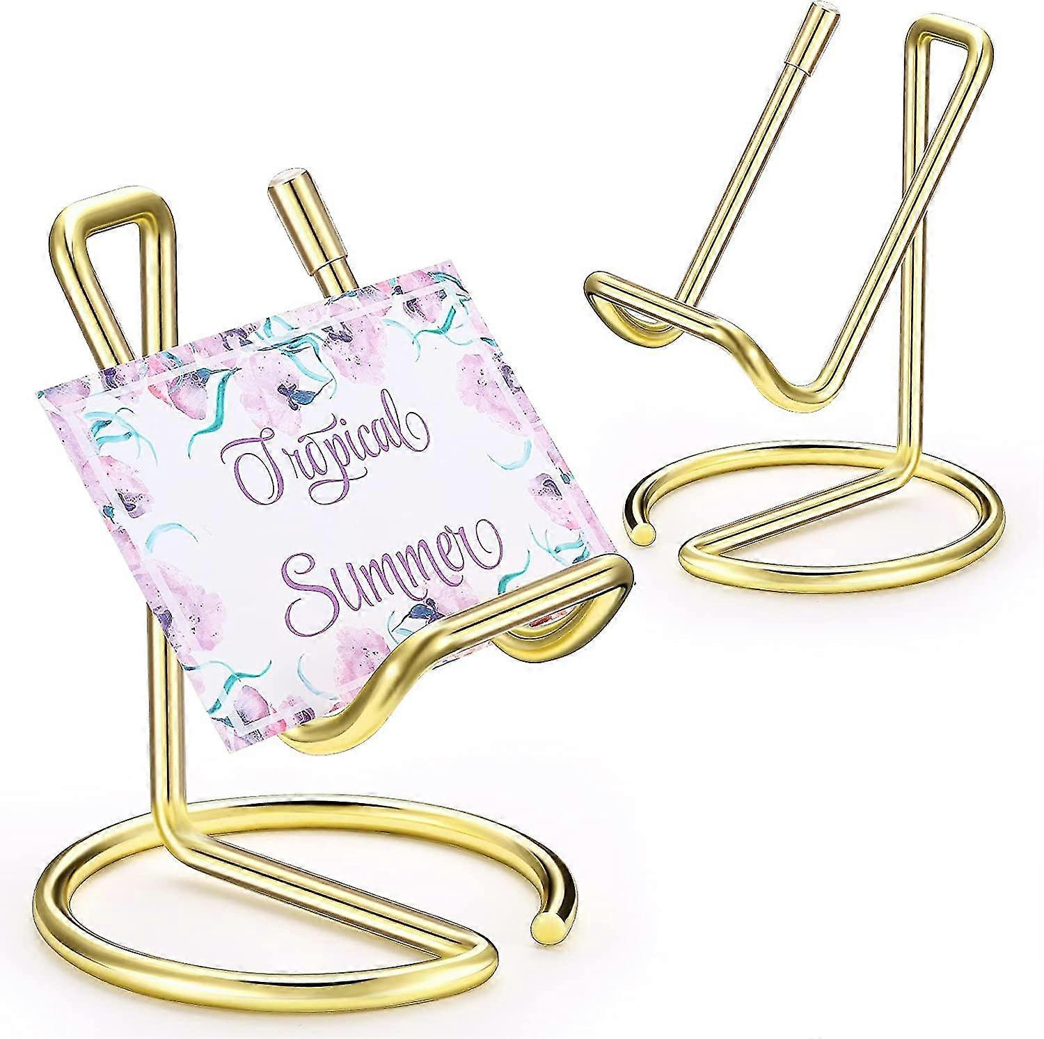 2 Pieces Metal Business Card Holder For Desk, Cell Phone Stand, Elegant Line Business Card Display Holder Stand