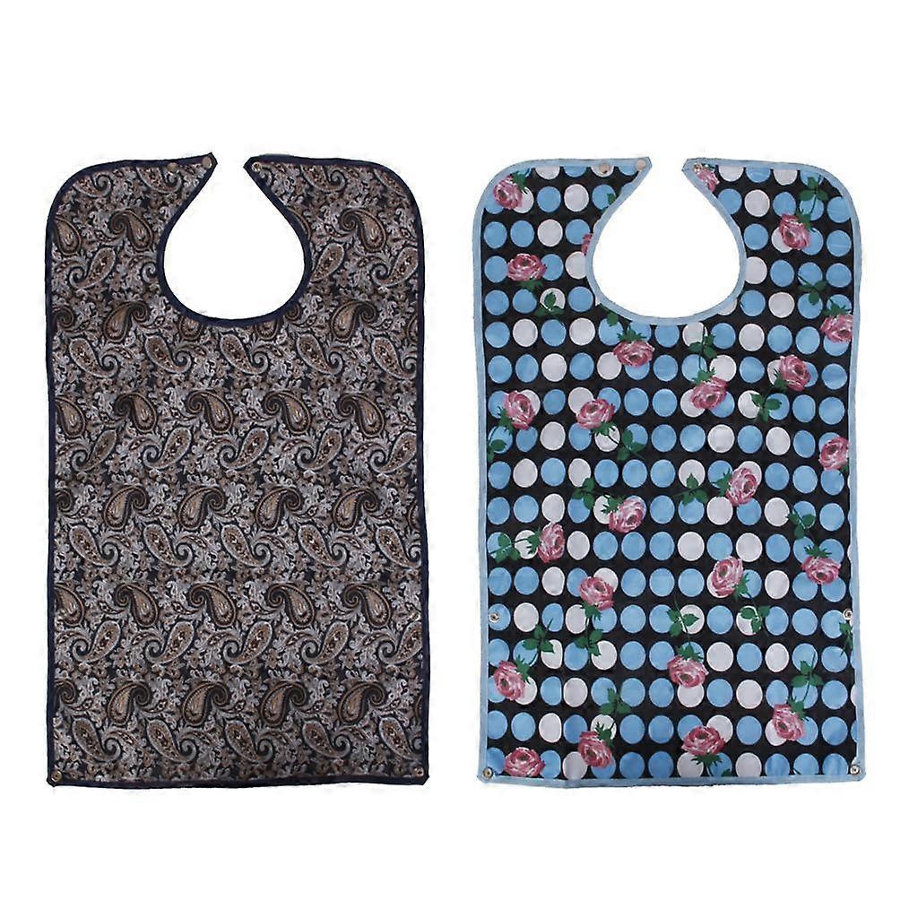 2 Pieces Women Men Waterproof Adult Elderly Mealtime Bibs Protector Disability Aid Aprons With Snap Closure