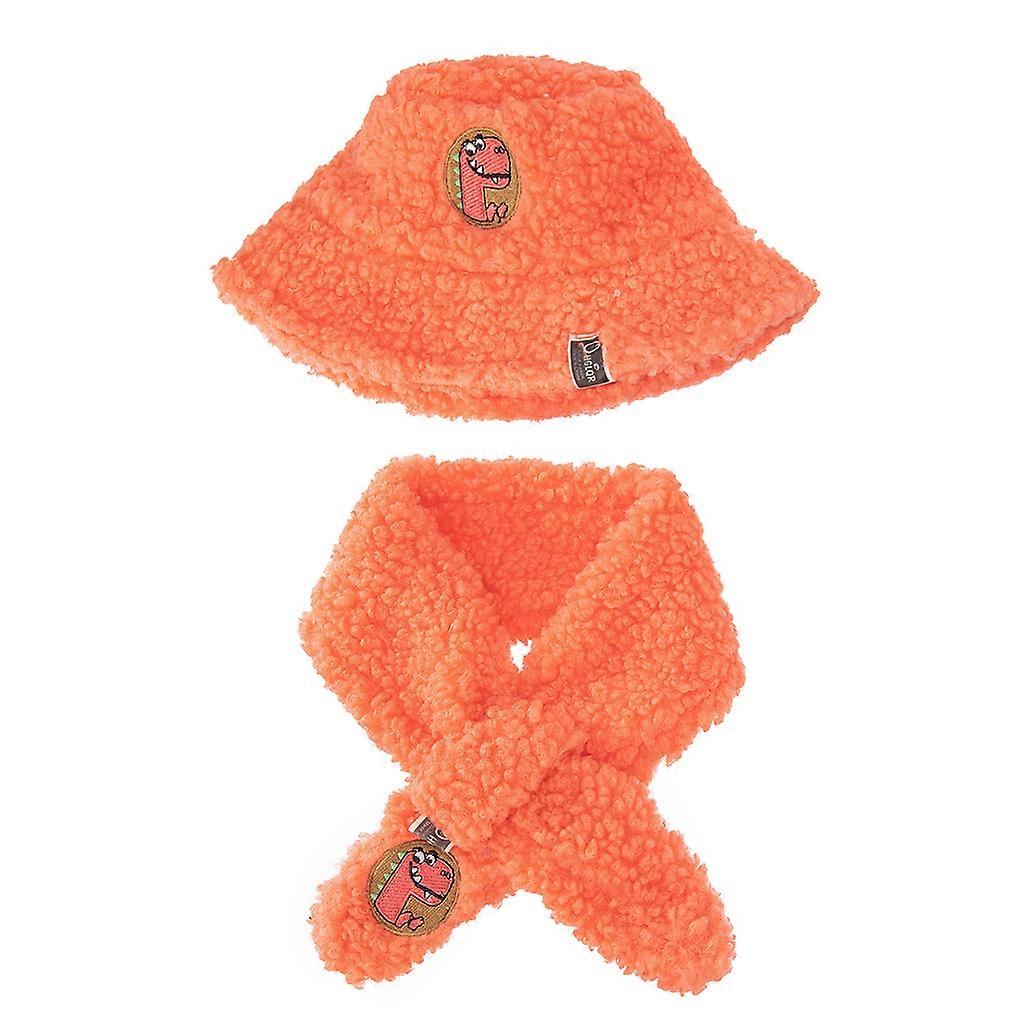 2 Pieces Baby Hat Scarf Set Bucket Cap Scarf Kit Winter for Head Neck Warm Children Suit for 0-2 Years Old Baby Polar Fl Orange