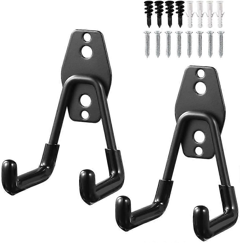 2 Pieces Double Wall Hook Garage Storage Hooks Storage Systems Hooks Wall Garage Hooks Garage Storage Rack For Organizing (black,11 X 7 X 1cm) Betterl