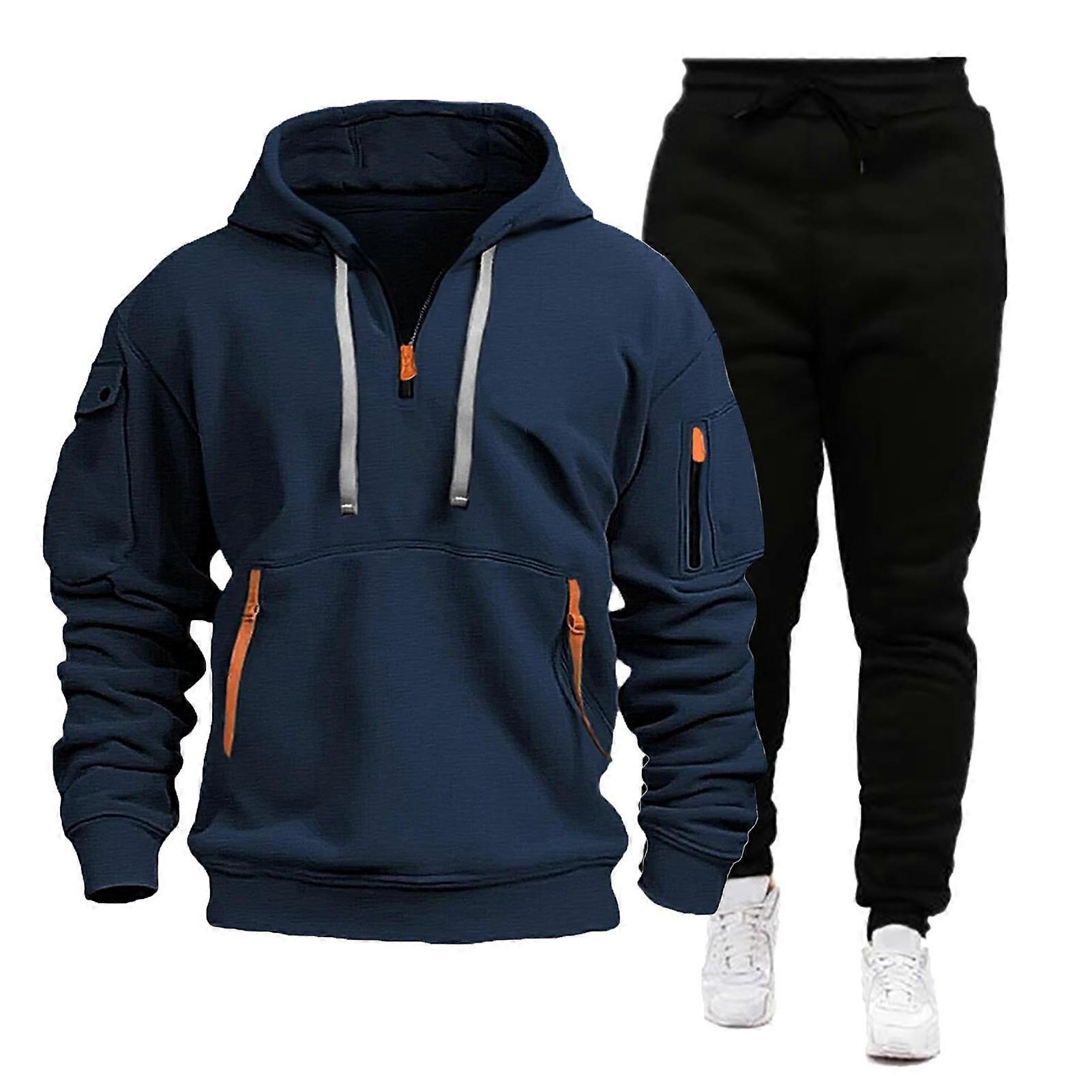 Practical Detailing: Designed with convenience in mind, the sweatshirt comes equipped with a chest zipper pocket and side pockets for storing small essentials securely. The ribbed cuffs on the sleeves and hem provide enhanced warmth and a snug fit, making this sports suit a practical choice for active individuals.