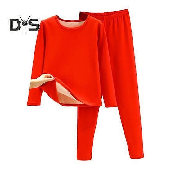 2 Pcs/Set Winter Top Pants Set Thick Plush Round Neck Long Sleeve Elastic Waist Warm Soft Cold proof Homewear Pajamas Set Thermal Underwear Set