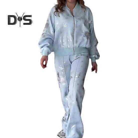 Material & Style: Elevate your wardrobe with this chic and versatile two-piece set made of breathable polyester fiber. The simple yet fashionable design features a sequined print that adds a touch of glamour to your everyday look.