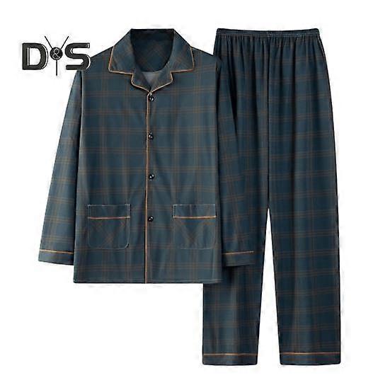 2Pcs/Set Men Pajamas Set Plaid Print Lapel Long Sleeve Single Breasted Shirt Elastic Waist Long Pants Set Loose Fit Loungewear Suit